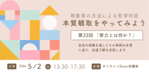 哲学対話とは、人が生きるなかで出会うさまざまな問いを、みんなで言葉を交わしながら、ゆっくり、じっくり考えることによって、自己と世界の見方を深く豊かにしていく場です。