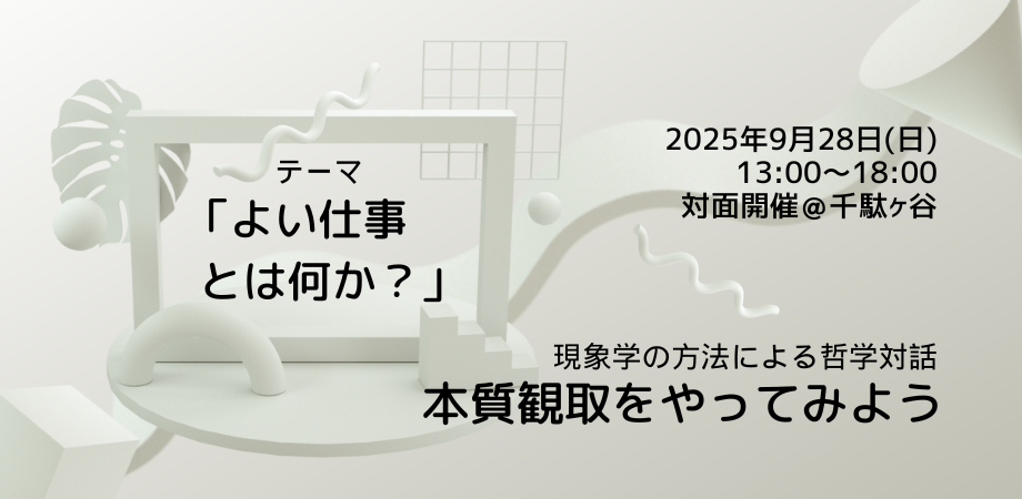 9/28(日)開催 現象学の方法による哲学対話「本質観取」をやってみよう(テーマ:よい仕事とは何か?)