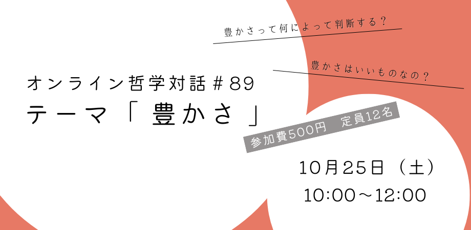10/25(土)開催 オンライン哲学対話#89:テーマ「豊かさ」