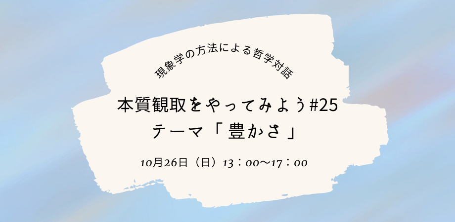 10/26(日)開催 現象学の方法による哲学対話「本質観取」をやってみよう(テーマ:豊かさ)