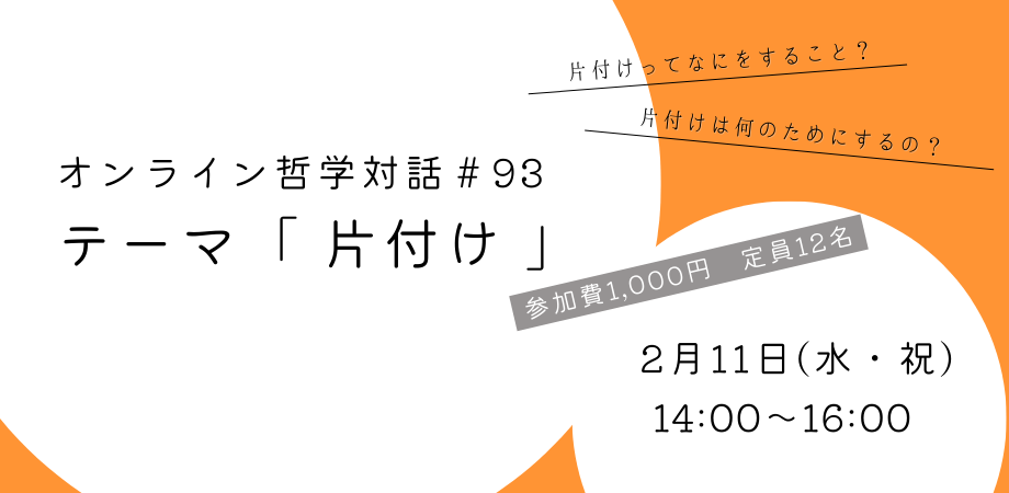 2/11(水・祝)開催 オンライン哲学対話#93:テーマ「片付け」