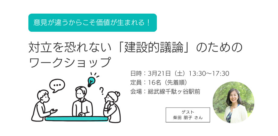 3/21(土)開催 対立を恐れない「建設的議論」のためのワークショップ