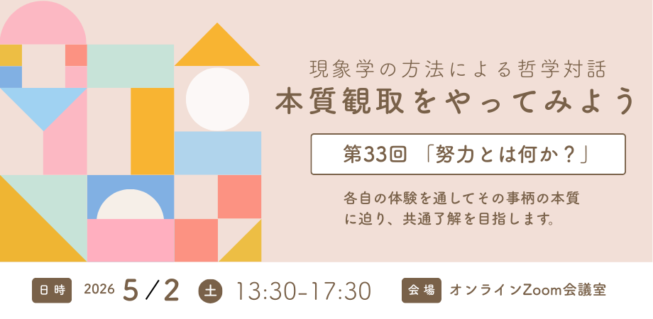 5/2(土)開催 現象学の方法による哲学対話「本質観取」をやってみよう#33「努力とは何か?」